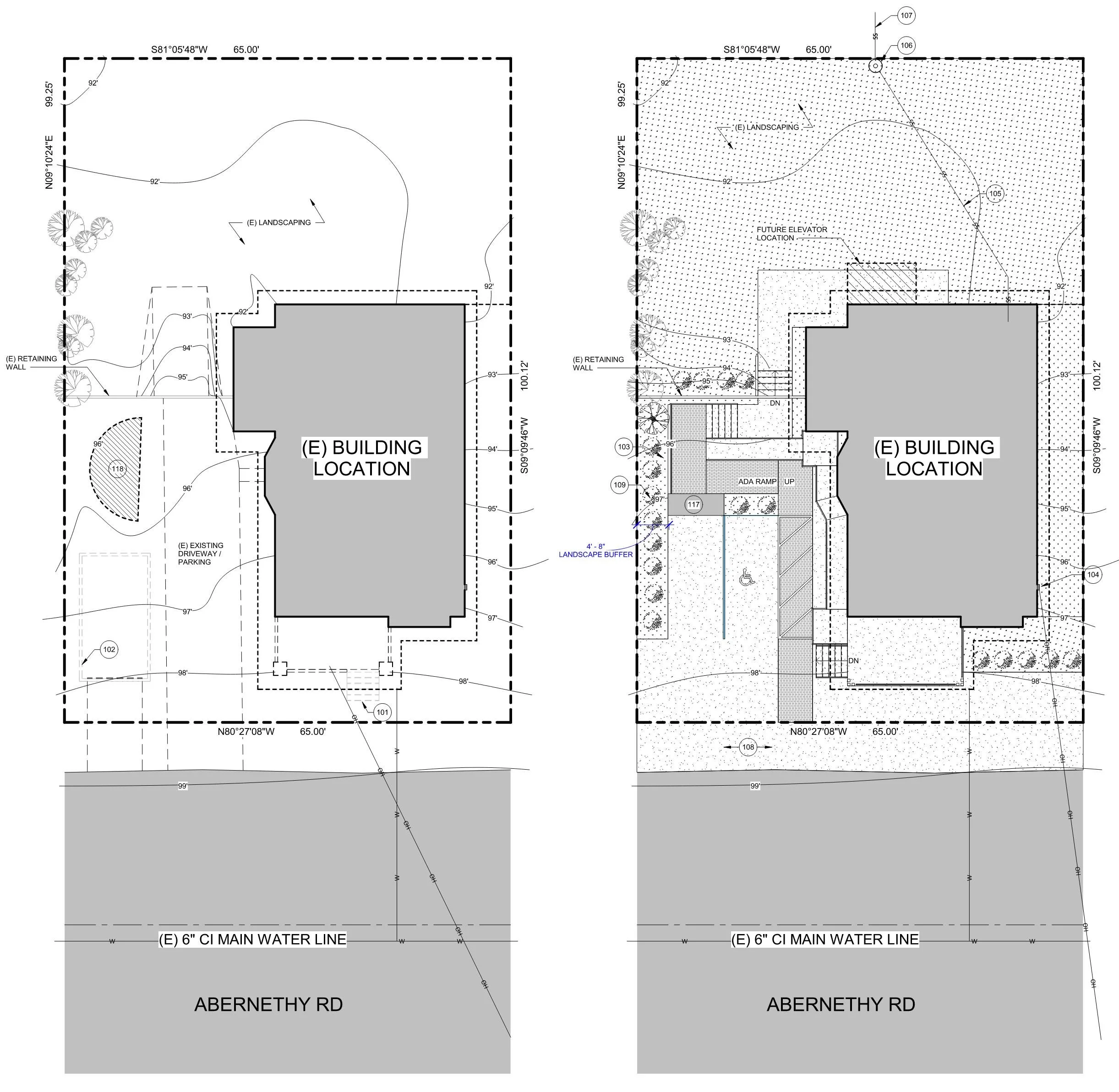 As part of the conversion process, the project went through site development review. Though not required, parking spaces were provided including one accessible parking space complete with a ramp to the main level of the structure.